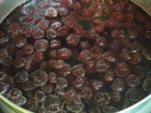 5. По прошествии 5 минут, отставляем варенье на несколько часов до полного остывания. Далее варим варенье еще 2 раза как указано выше, в течении 5 минут, каждый раз давая варенью остыть. После последней варки можно заливать варенье в банки и затем плотно их закрутить. В общей сложности, на приготовление варенья у меня уходит примерно 2 дня